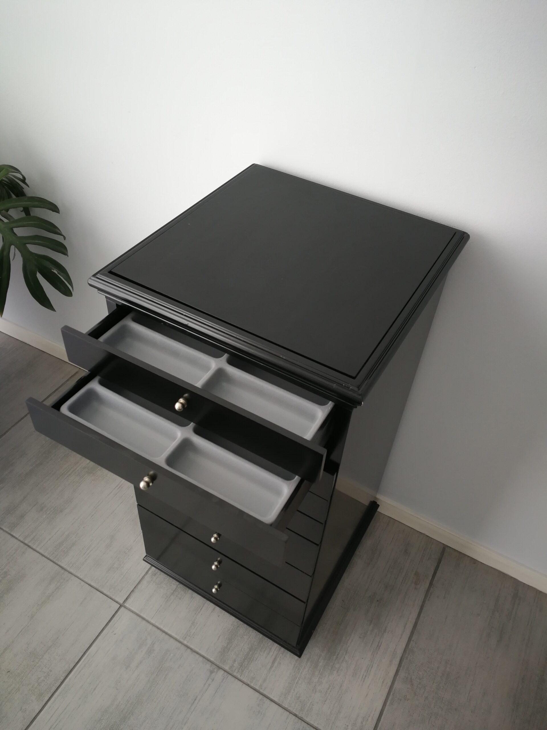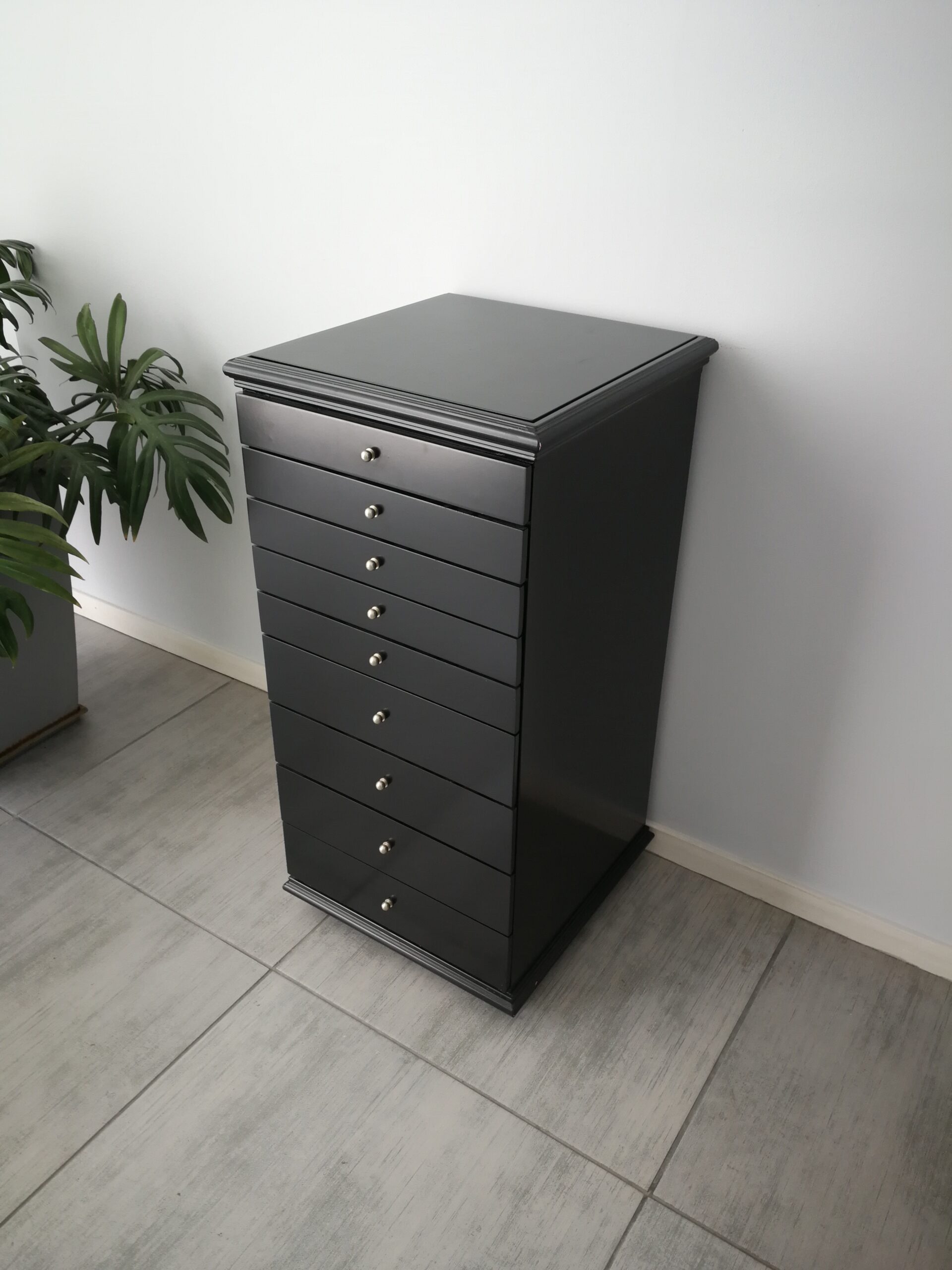 Mueble con 9 cajones realizados en mdf laqueados color blanco o negro.