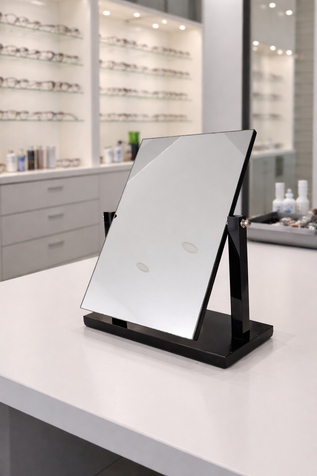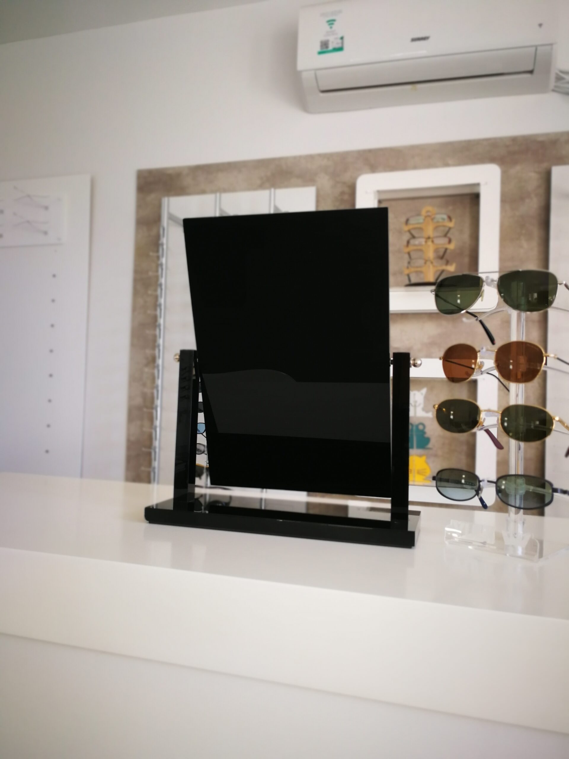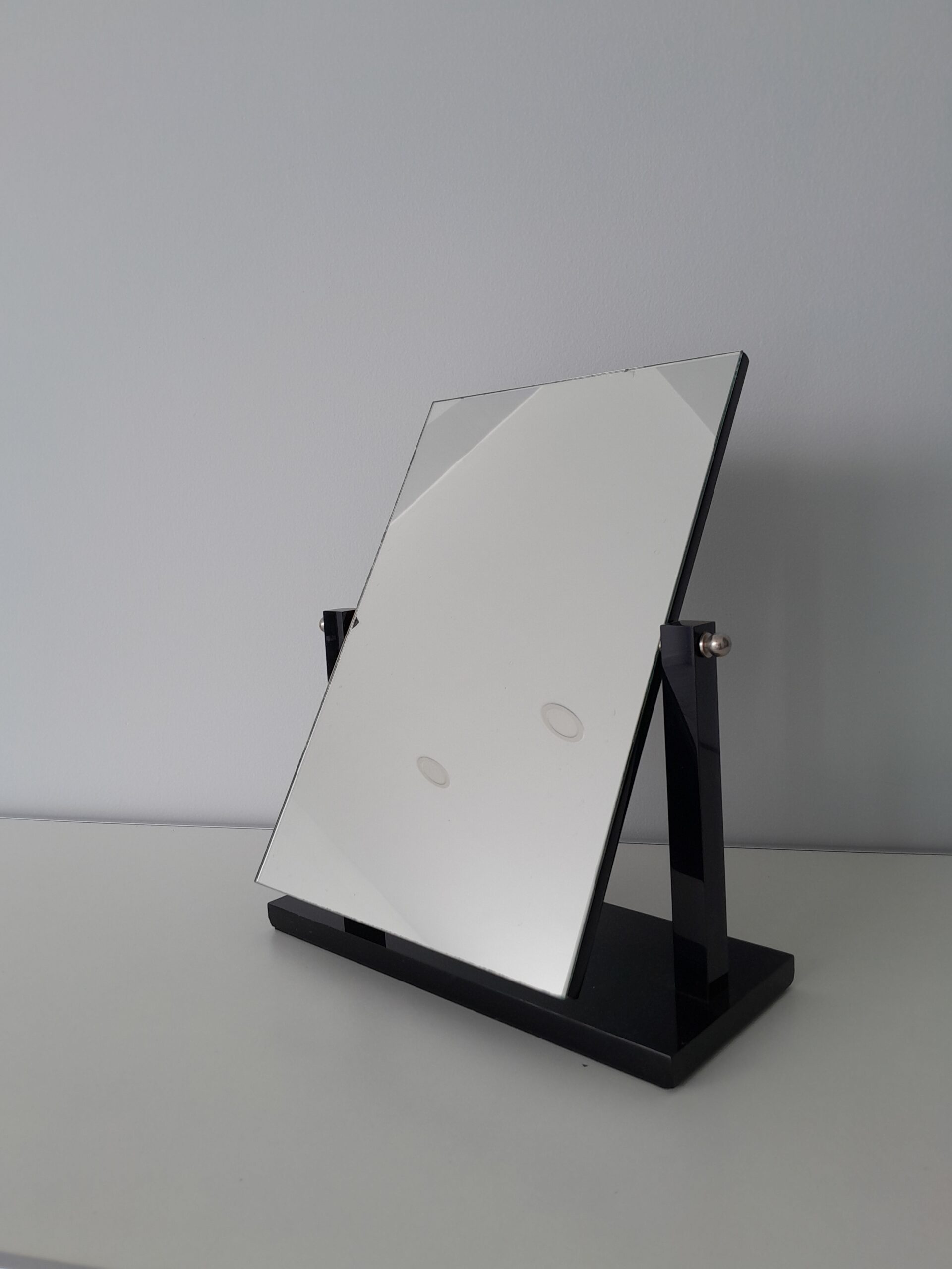 Espejo realizado en acrílico negro, de amplio tamaño.