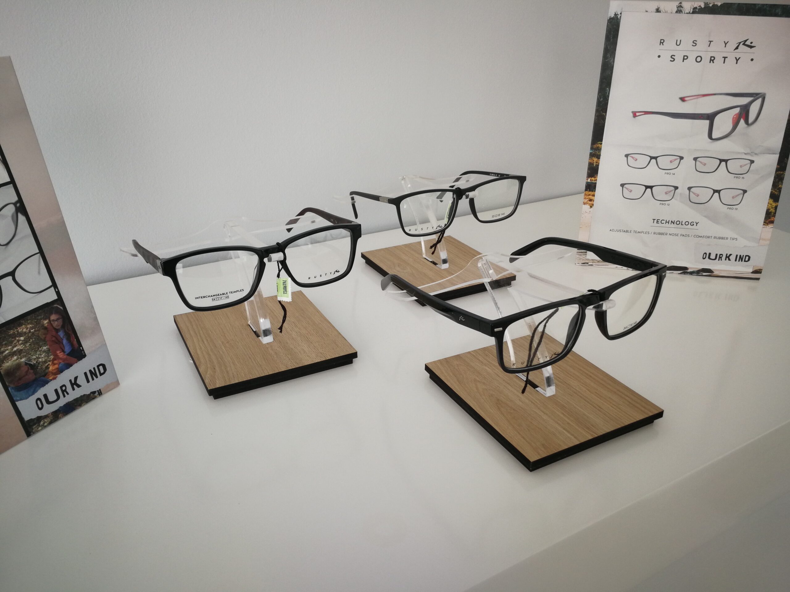 Exhibidor realizado en acrílico cristal y melamina simil madera.